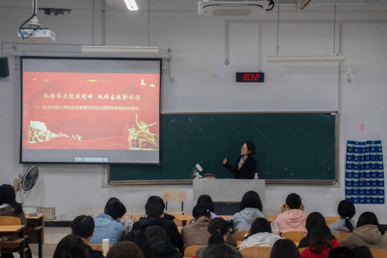 第一场“弘扬伟大抗战精神,砥砺奋进新征程”主题讲座中,杨老师讲述了抗战时期人民砥砺奋进的历史故事,号召同学们以先辈为榜样,锚定“个人理想与家国需求”的结合点,深刻领悟抗战精神“坚韧不拔、报国担当”的内核,明晰材料专业青年的时代使命。