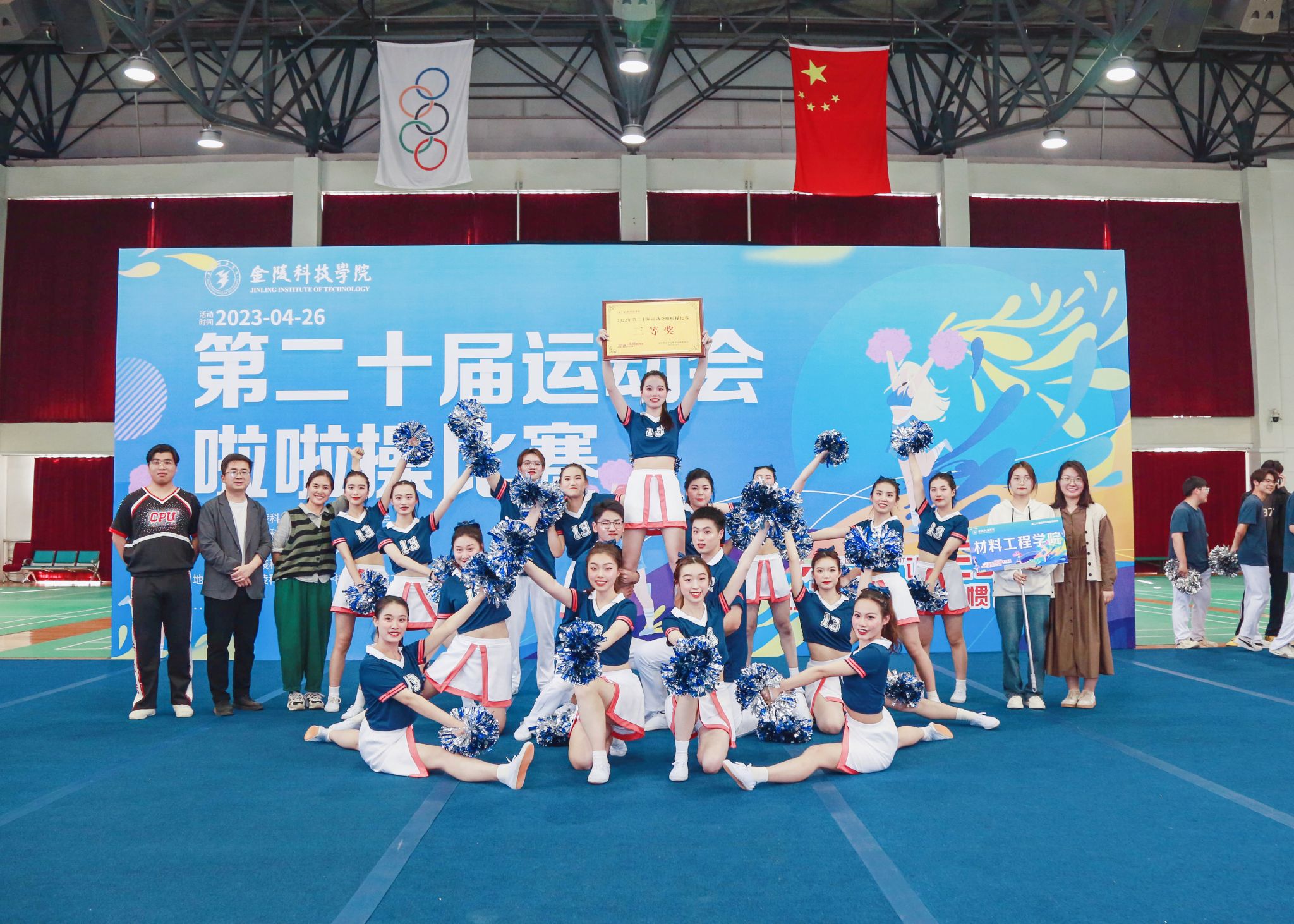 2023年4月26日,开云官方版网站登录入口第二十届运动会啦啦操比赛在南区体育馆顺利举行。材料工程学院的同学们积极参加,凭着饱满的热情、精彩的表演获得评委组一致认可,取得了第六名的优异成绩,荣获三等奖。