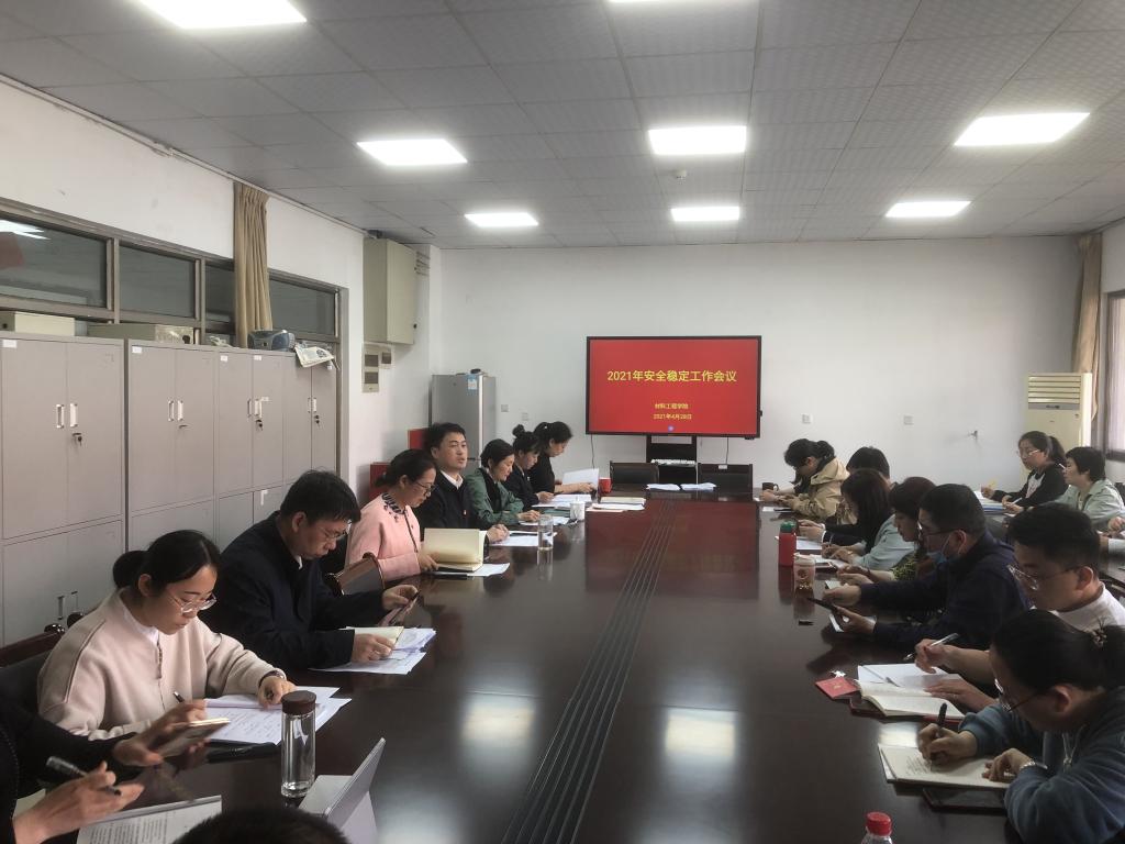 为进一步树牢安全发展理念,筑牢安全工作防线,材料工程学院于4月28日下午召开了2021年安全稳定工作会议。党委书记叶原丰主持会议,院长郝凌云、党委副书记陈智慧、副院长管航敏出席会议,材料工程学院全体教职工参加了本次会议。